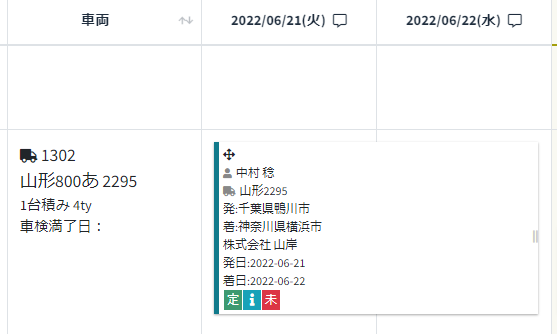運行の概要がボックス内に表示されます。またボックスの幅は運行の発日~着日までの長さとなっています。