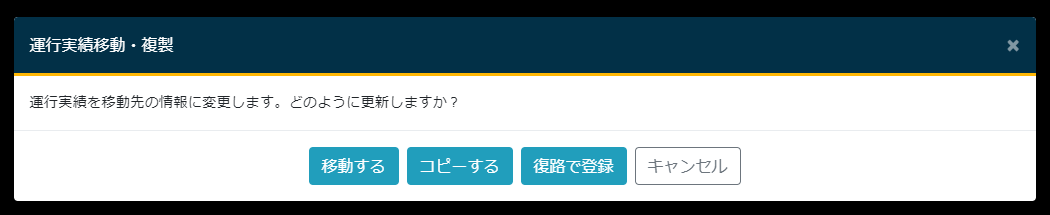 - 復路で登録する(定期便以外)・・・ドラッグされた運行を複製します。車両と受注日、請求日、発日はドロップしたマスのものに変更されます。