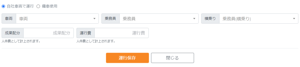 自車車両で運行ラジオボタンを選択すると、自車情報を入力する欄が表示されます。
