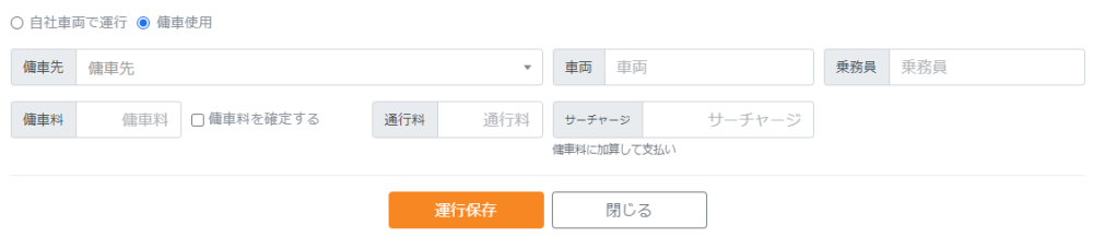 傭車使用ラジオボタンを選択すると、傭車情報を入力する欄が表示されます。