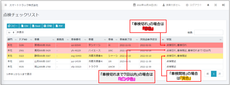 1. サイドメニューの「車両管理」> 「点検チェックリスト」をクリックします。
