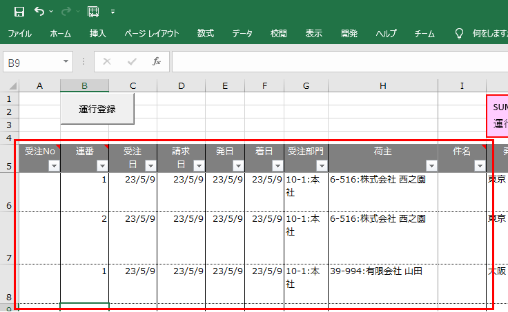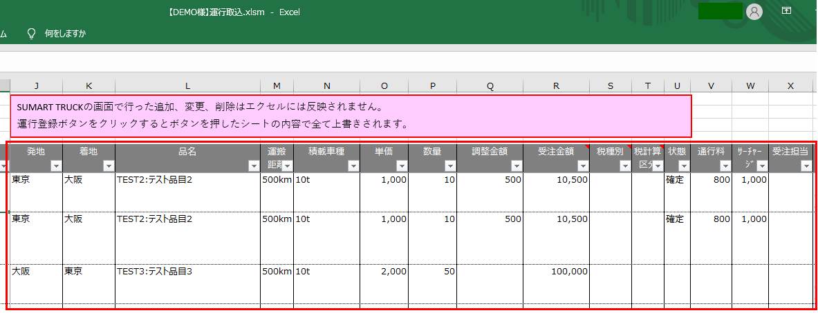 受注金額が自動計算されます。 - 受注金額:運賃を入力します。