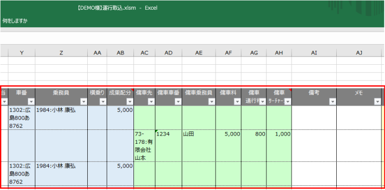 - 傭車料・傭車通行料・傭車サーチャージ:傭車先へ支払う金額を入力します。