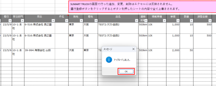 - アップロードが正常終了した場合、下記のメッセージが表示されます。OKボタンをクリックして下さい。