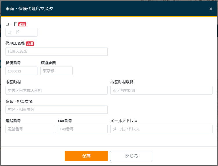 - コード:必須項目です。保険代理店の識別番号を入力します。