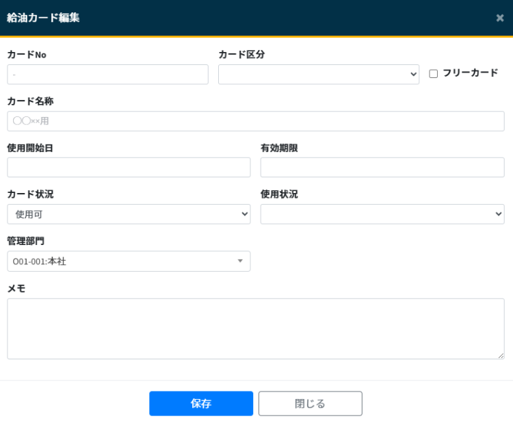 給油カード情報を登録していきます。カードNoは必須項目です。