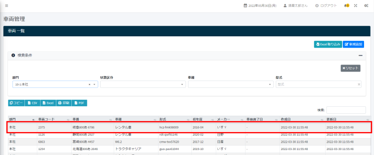 1. サイドメニューの「車両管理」> 「車両一覧」をクリックします。