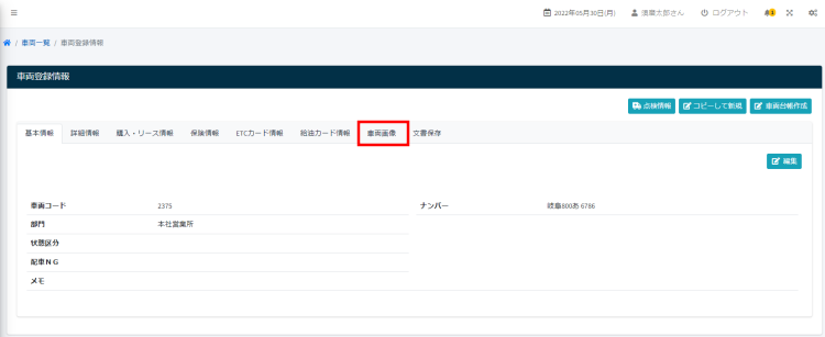 3. 車両登録情報が表示されたら、車両画像タブをクリックします。
