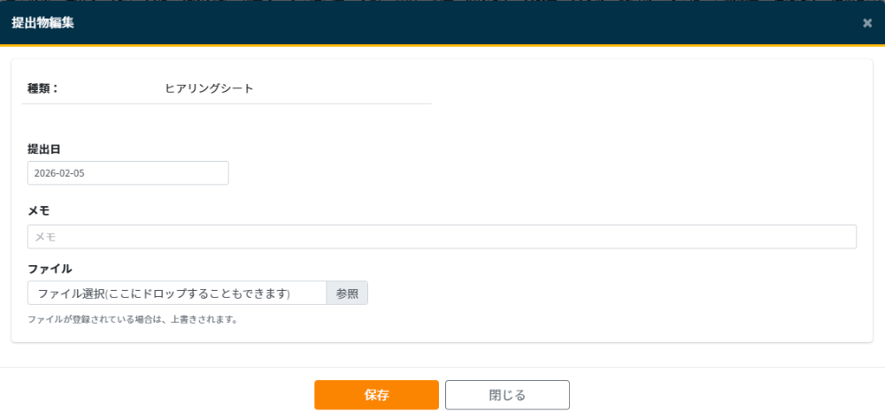 ※提出物の種類については調整可能です。詳しくはスマートトラック管理者へご相談ください。 - 修正したい提出物の行をクリックします。提出物編集フォームが開きます。