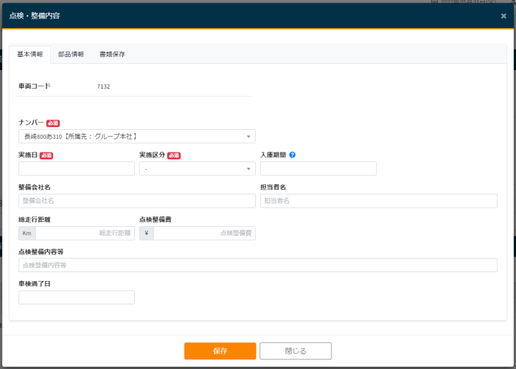 - 車検満了日:実施区分が車検の場合は必須項目です。車検満了日を入力してください。