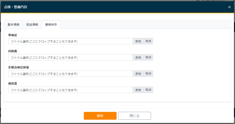 基本情報、交換部品、点検・整備に係る文書を入力したら下部にある保存ボタンを押します。