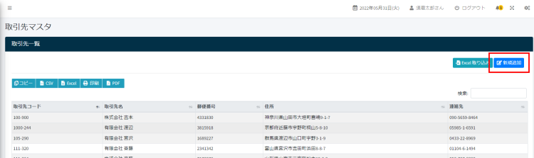 - 取引先一覧画面の右上にある新規追加ボタンをクリックします。