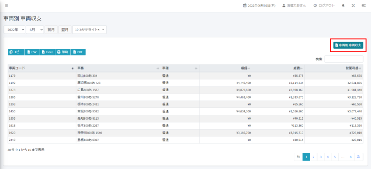 4. 車両別 車両収支が表示されます。