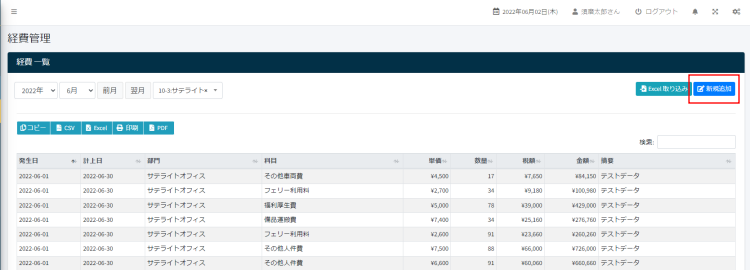 - 経費一覧画面の右上にある新規追加ボタンをクリックします。