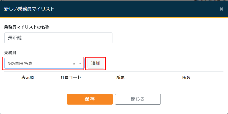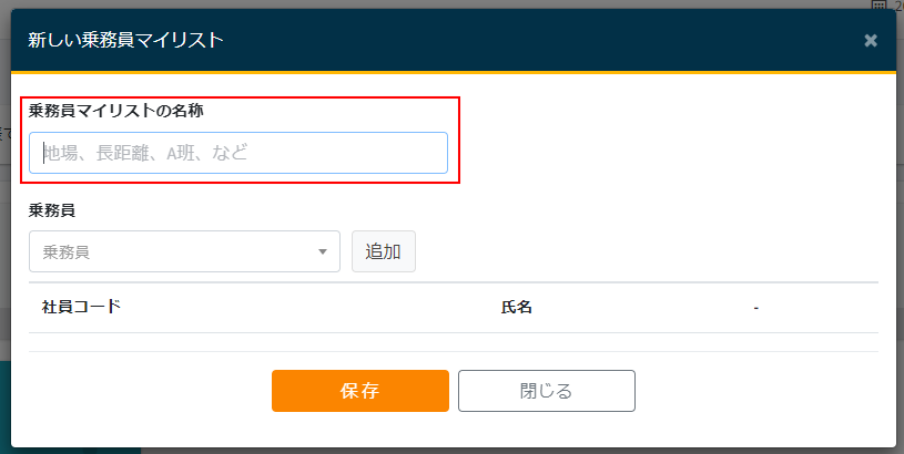 - 乗務員マイリストの名称を入力します。