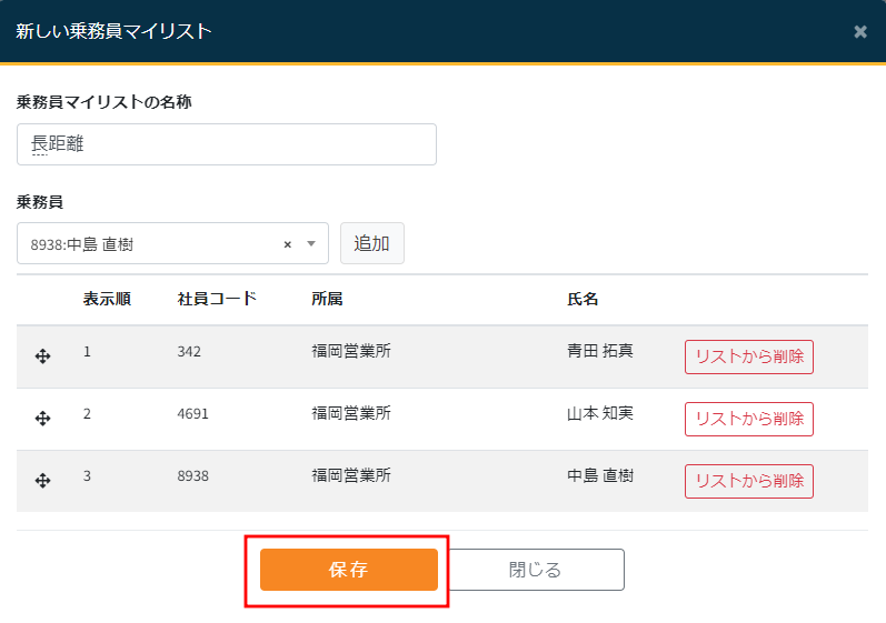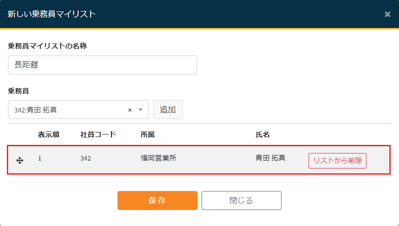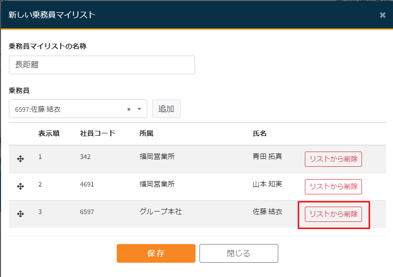 例として乗務員マイリストの設定方法をご説明します。操作方法は車両リストでも同じです。