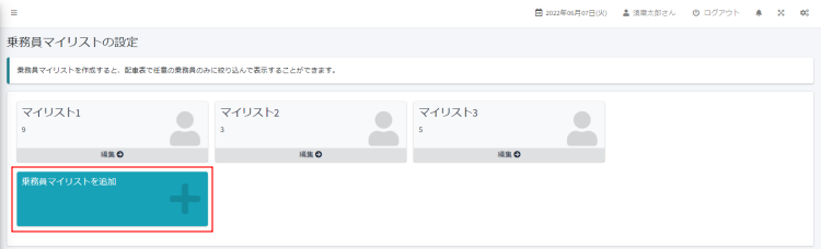 - 乗務員マイリストの設定画面が表示されます。乗務員マイリストを追加をクリックします。