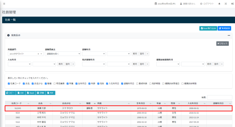 1. サイドメニューの「社員管理」> 「社員一覧」をクリックします。