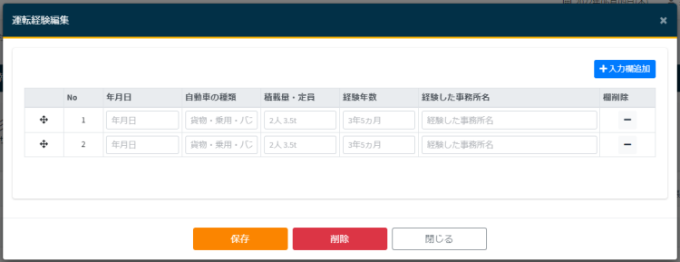 5. 経験した事業所名:対象の運転業務を経験した事業所名を入力します。