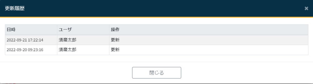 1の最終更新情報をクリックすると、履歴を確認することができます。