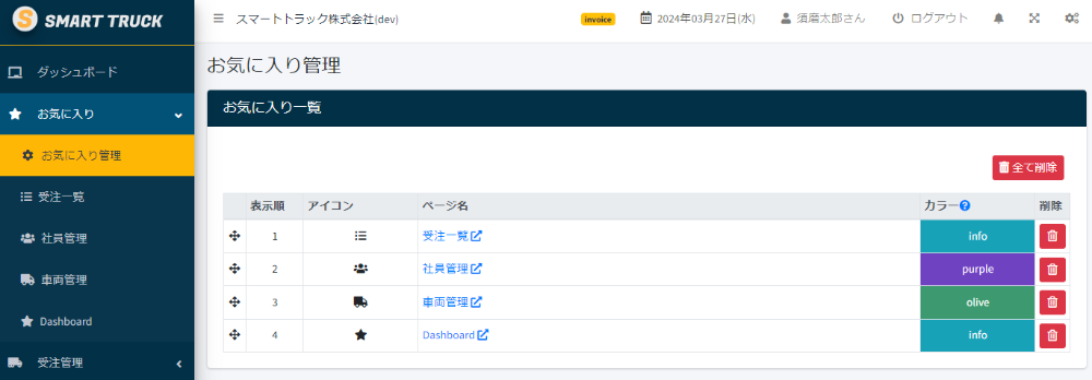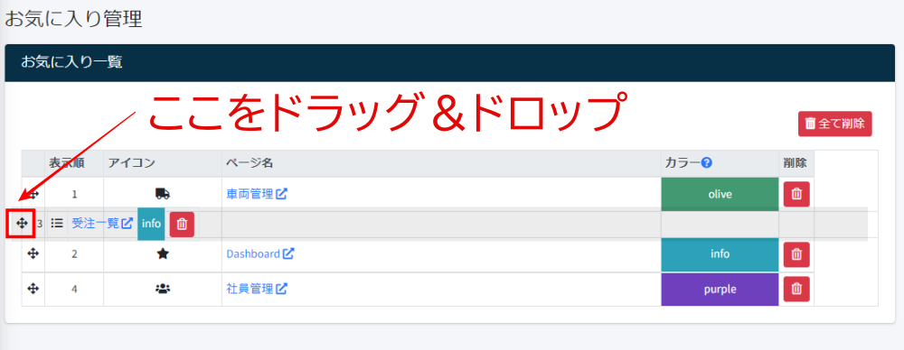 ※サイドメニューのお気に入りに表示順の変更を反映させるには一度画面をリロードしてください。