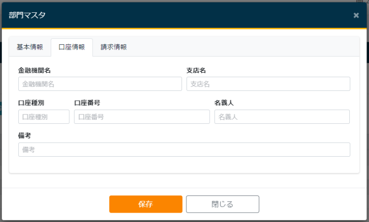 部門の各種情報を登録してきます。重要な項目についてご説明します。