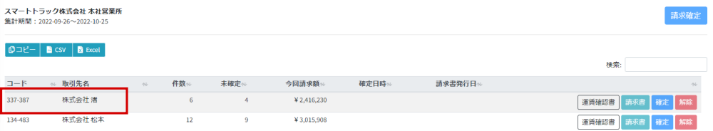 - 確定したい荷主のコードや取引先名を確認します。